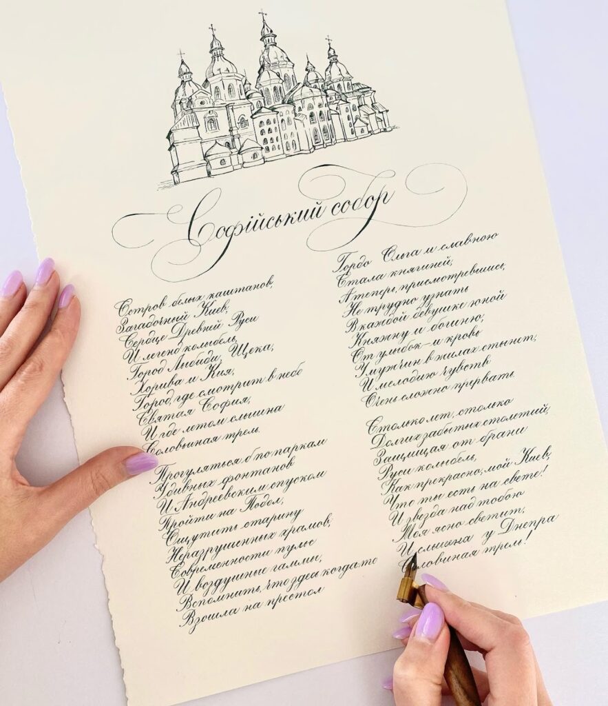 Каллиграфия – это искусство создания красивых и гармоничных букв и слов. Она требует от человека терпения, тонкости восприятия и умения работать с инструментами. Каллиграфия может быть использована для создания различных произведений, таких как открытки, приглашения, плакаты, логотипы и многое другое.