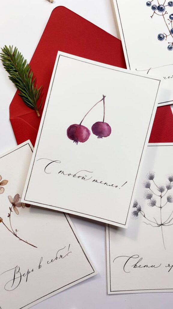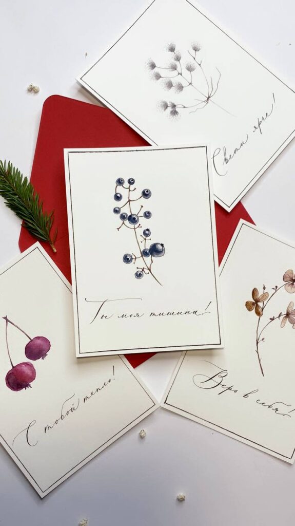 Особенные открытки ручной работы с теплыми словами для Ваших близких. Акварель и каллиграфия.