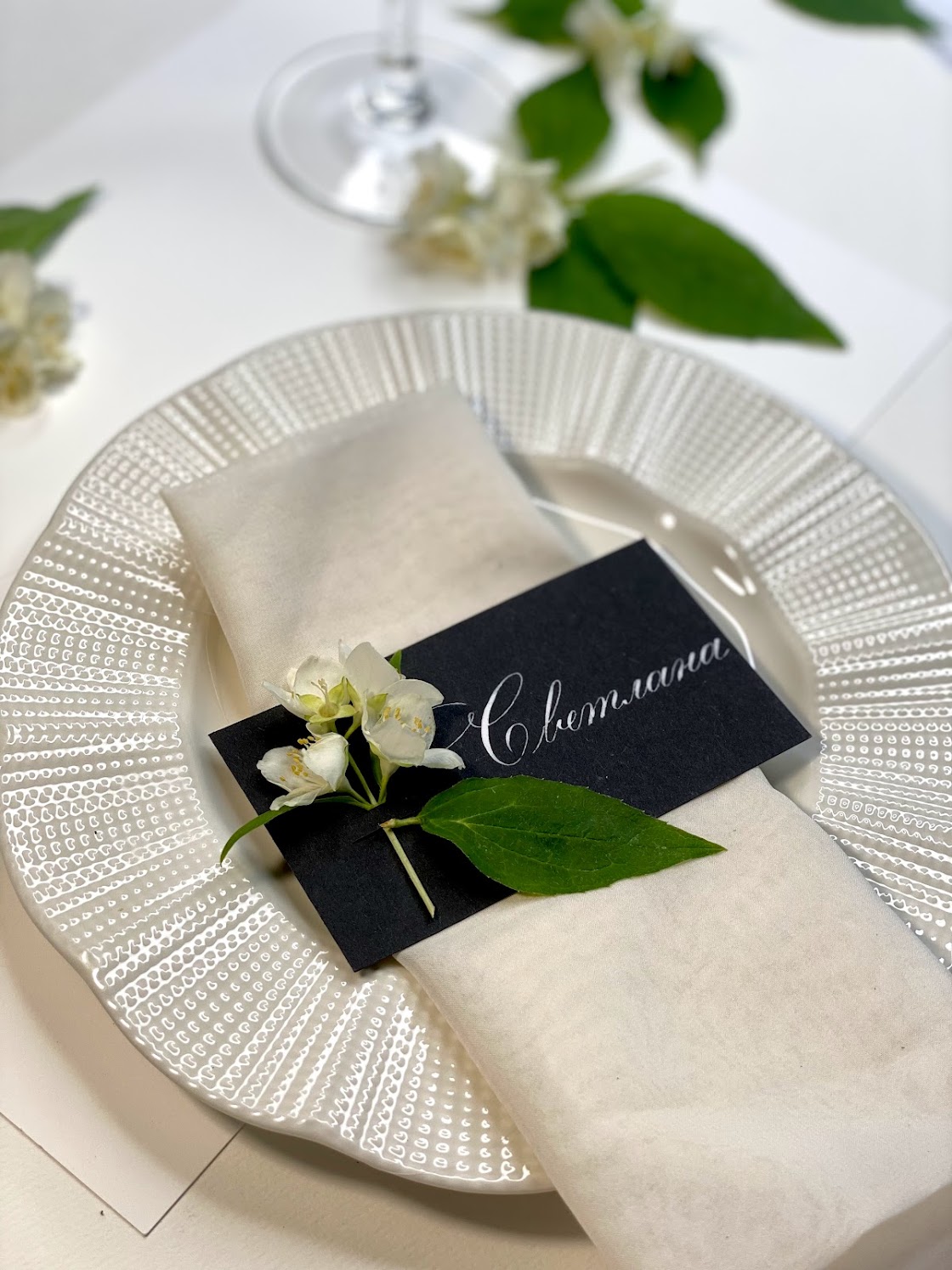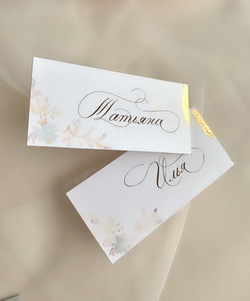 Не упустите возможность добавить утонченный штрих к вашему свадебному декору с помощью свадебной каллиграфии. Выполняется на дизайнерской или акварельной бумаге плотность 250-300 гр.