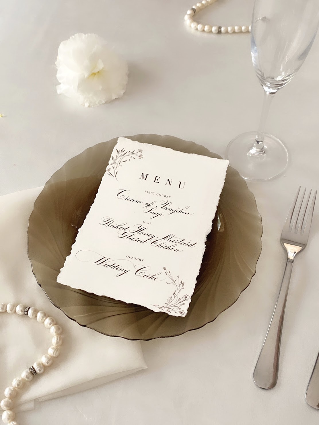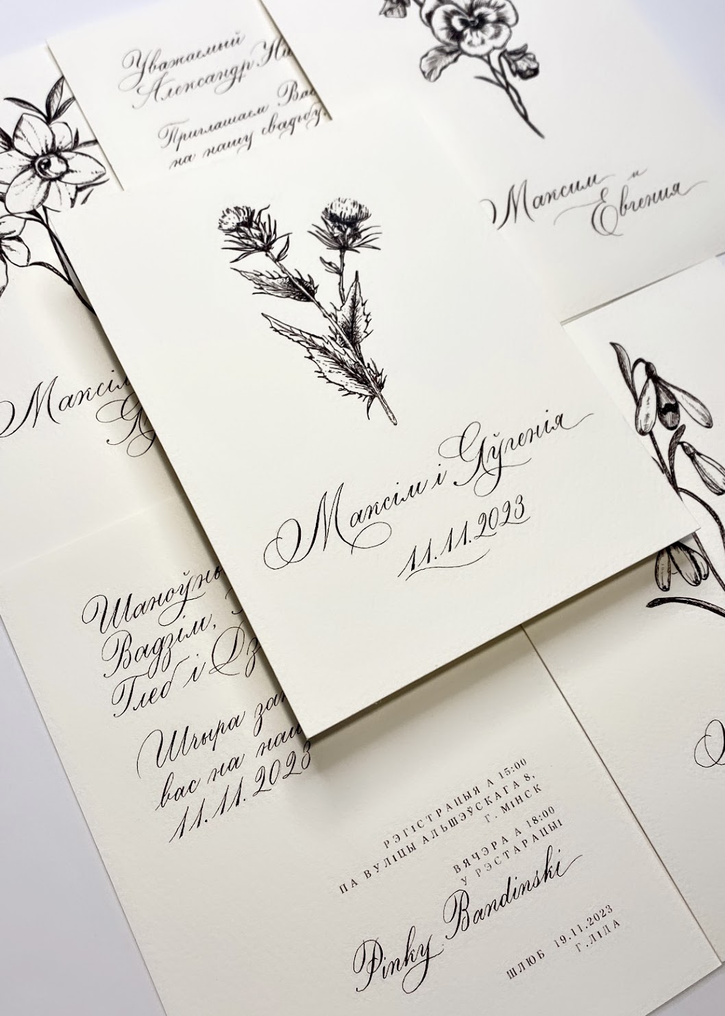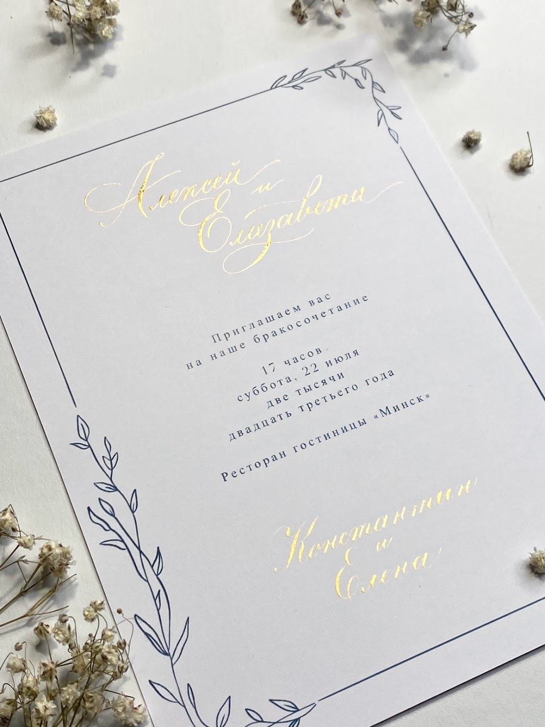 У меня вы можете заказать приглашения и меню по готовым решениям, которые я адаптирую для вашего торжества.